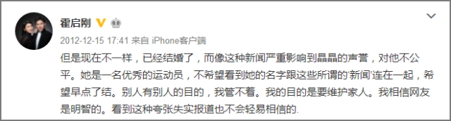 当别人误解或质疑郭晶晶时,他总是第一个跳出来。