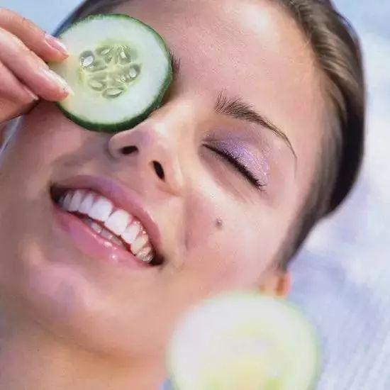 在眼下部皮肤贴薄薄的黄瓜片,每天敷眼20分钟,舒缓眼部肌肤,同时补水保湿,坚持下来可收到减轻下眼袋的美容效果。