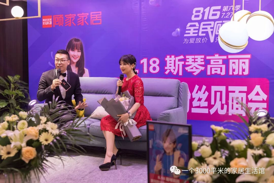 在活动最后,主持人和斯琴高丽坐在顾家家居超纤布艺沙发(BY.620哥本哈根)上面进行了简单的访谈。