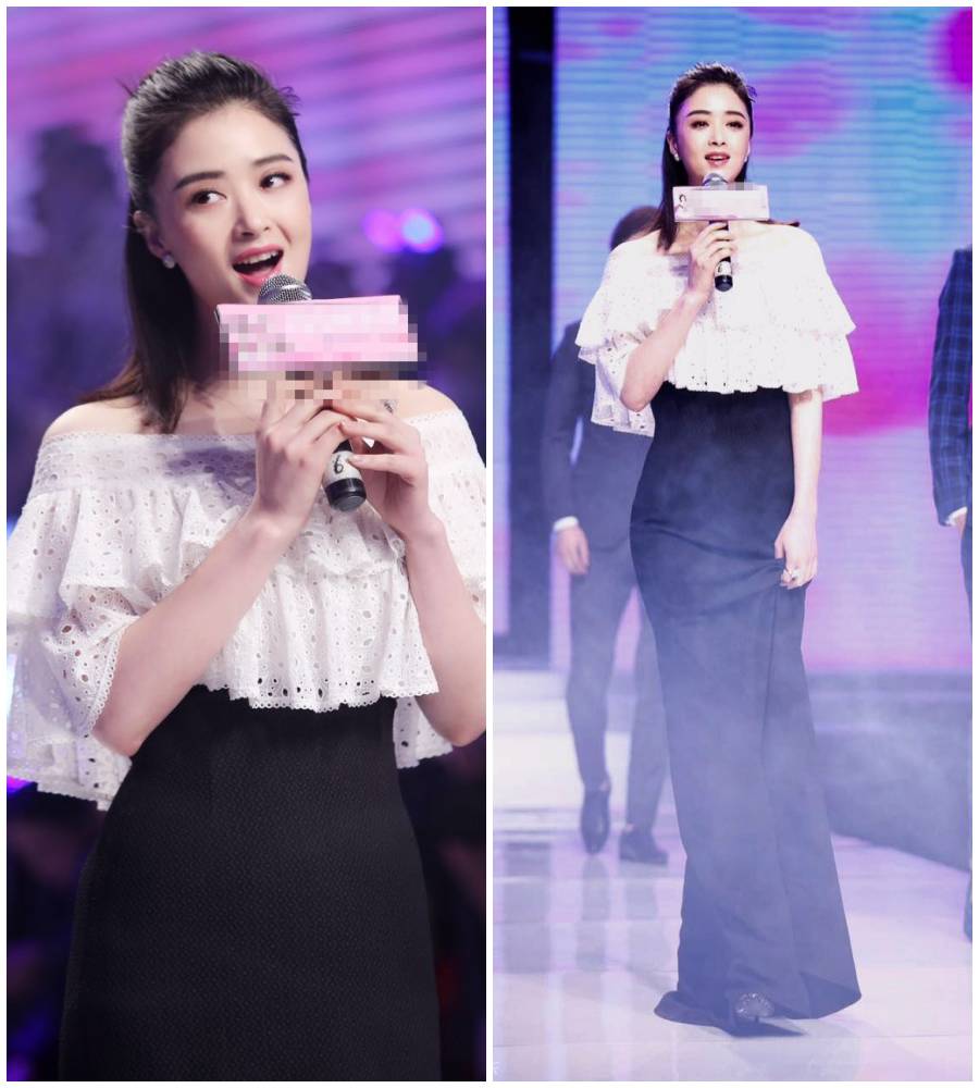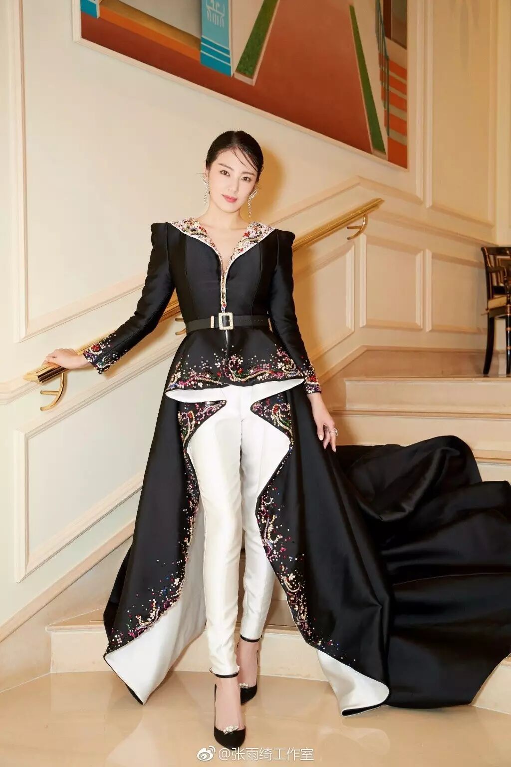 找来秀场图一看才发现,原来这件衣服原本是深V,但张雨绮却缝成了V领,甘当套马杆的汉子。