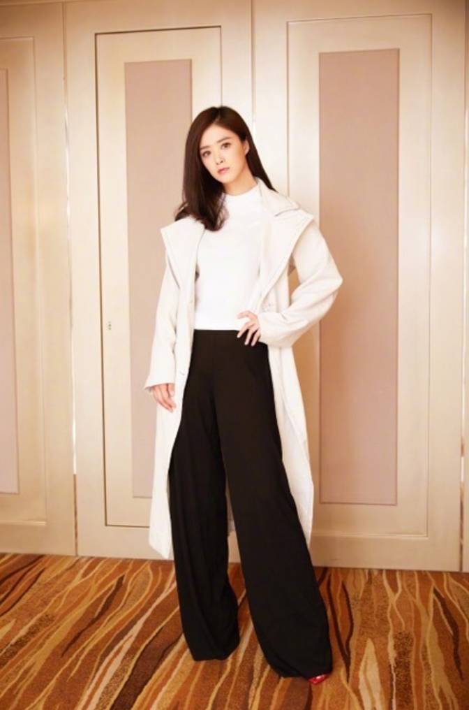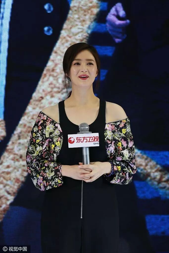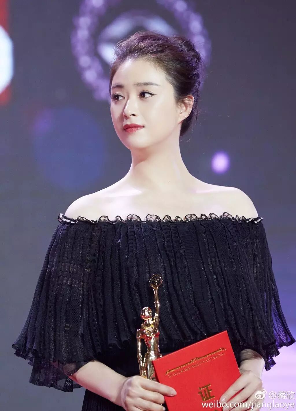 于是后来的蒋欣就学聪明了,能穿宽松的,从不穿紧身的。一字领的小裙子,松松大大的袖子有效遮住了宽肩粗胳膊。
