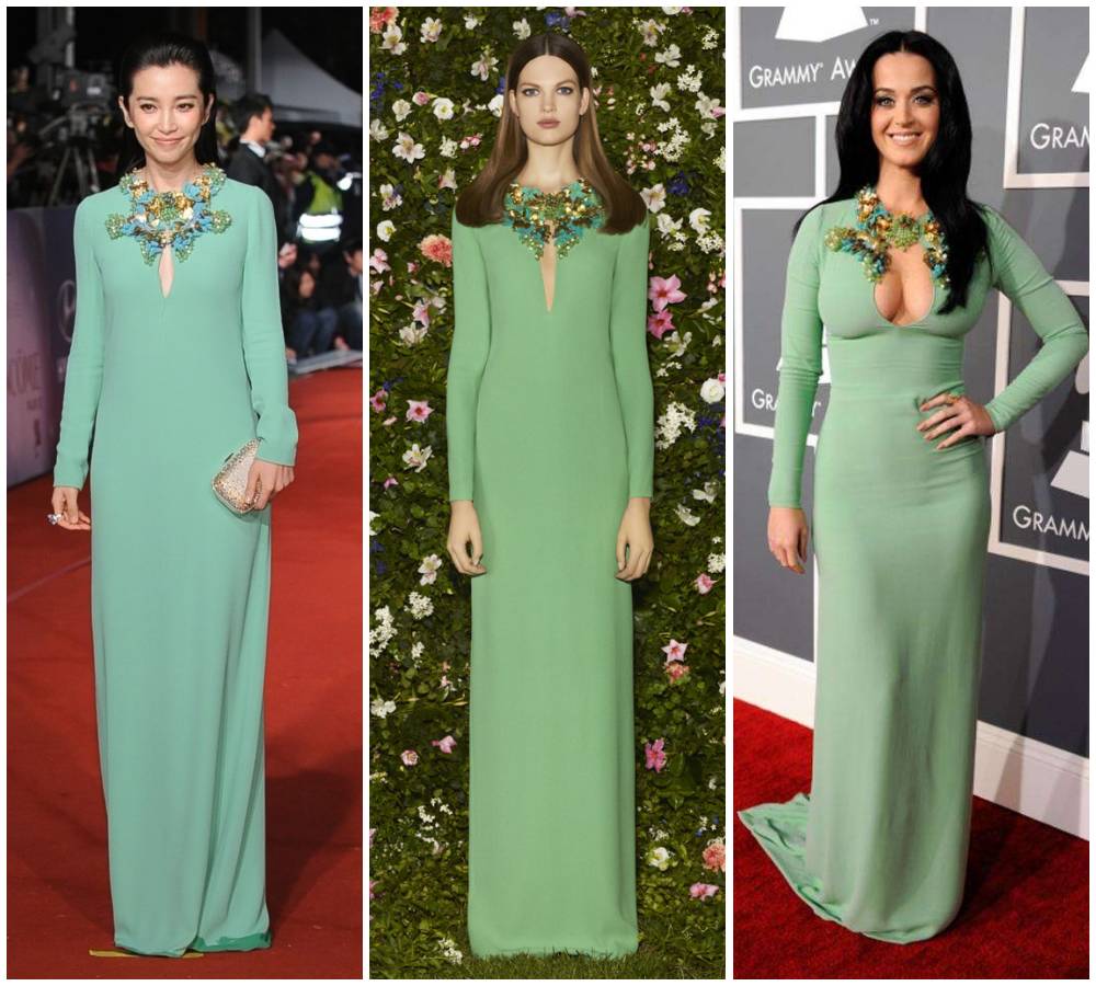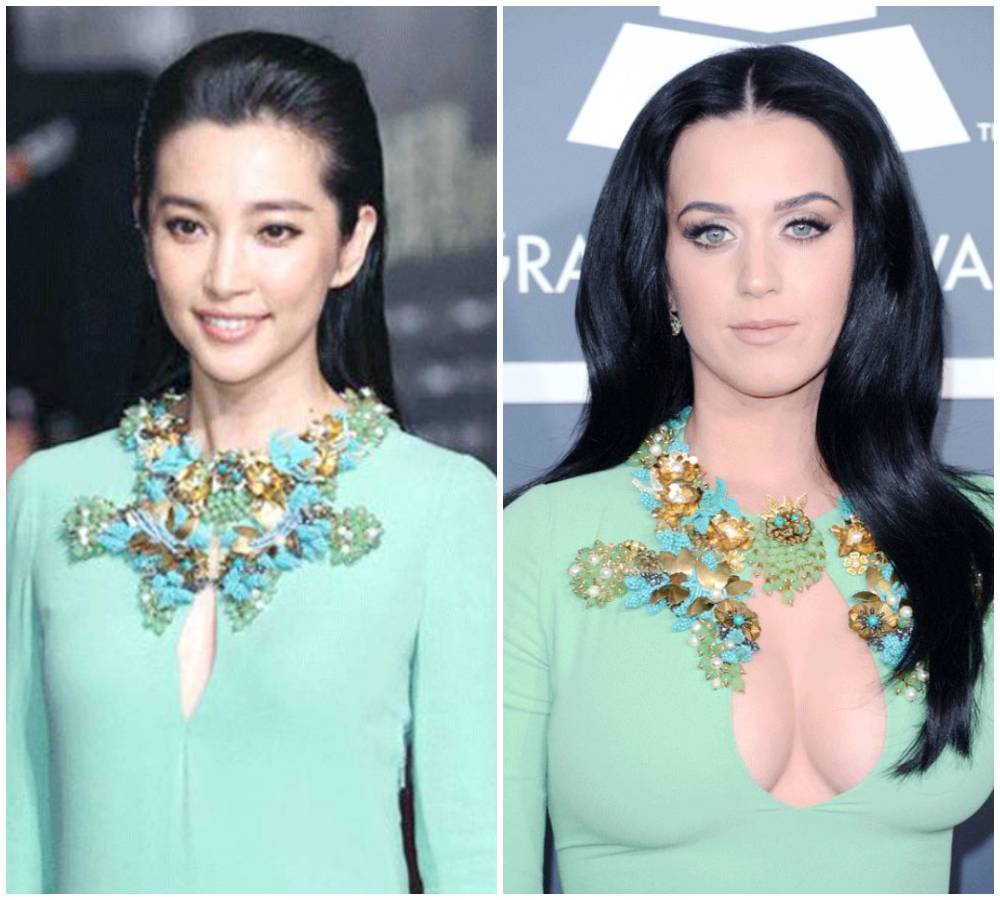 在时尚界,有个奇怪的规律:撞衫不可怕,谁胸大谁尴尬。要论平胸和大胸的世纪决战,必须要谈谈李冰冰和水果姐凯蒂·佩里。