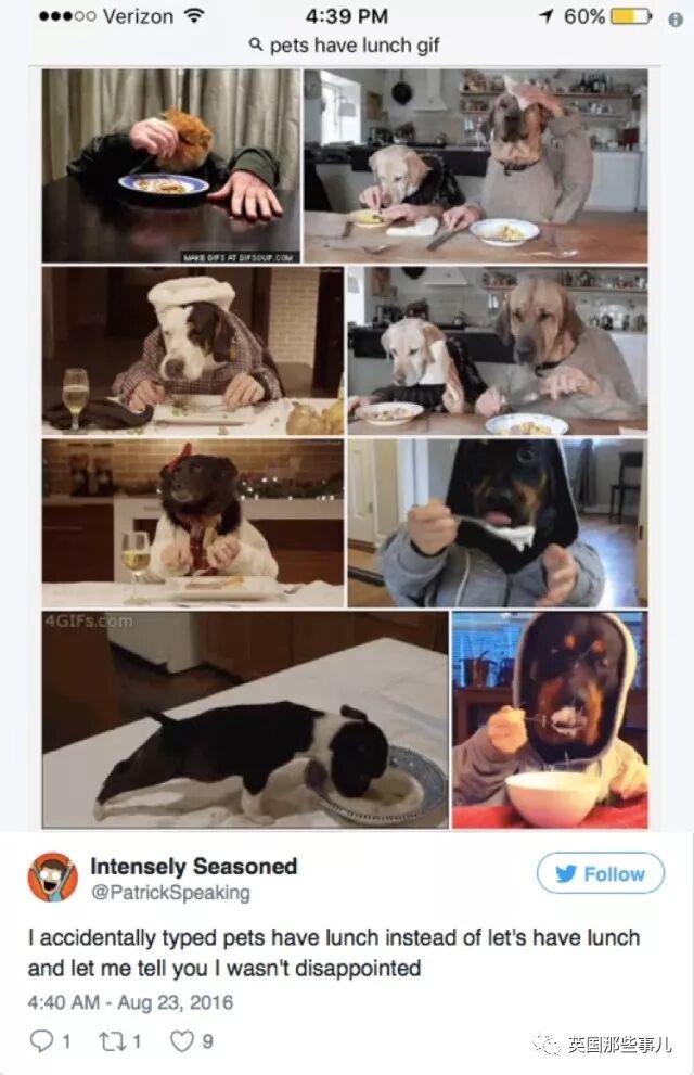 网友14:我把 “let's have lunch” (一起来吃午饭)打成了 “pets have lunch ”(宠物们吃午饭),搜出来的结果很赞......