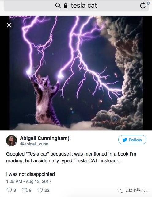 网友4:我把 “Tesla car” (特斯拉汽车)敲成了 “Tesla cat” (特斯拉猫)......