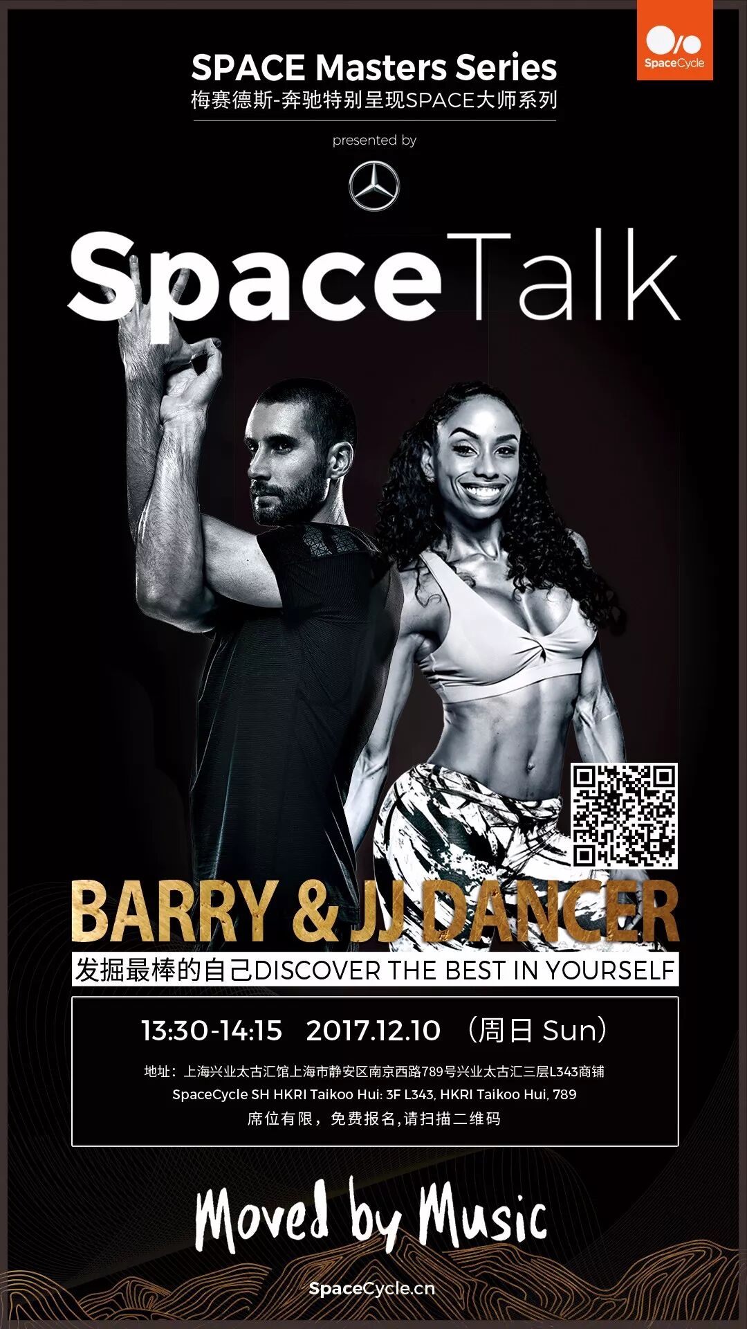 SpaceCycle给你一次与大师零距离交流并且完全免费的难得机会。12月10日,JJ Dancer和Barry,带着你一起去发现一个最棒的自己!