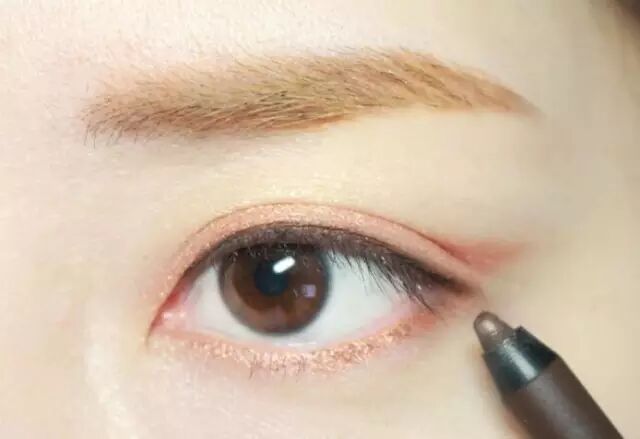 STEP5:棕色的眼线笔画一条自然的眼线。