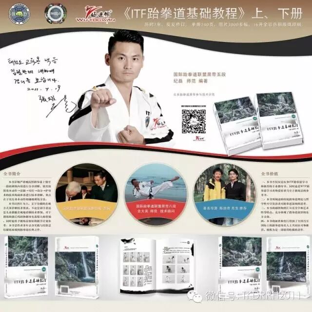 此套教程为国际跆拳道联盟黑带五段、国际师范、国际裁判、演员、导演、动作指导纪磊先生的力作,《ITF跆拳道基础教程》上册现已印刷出版发行。