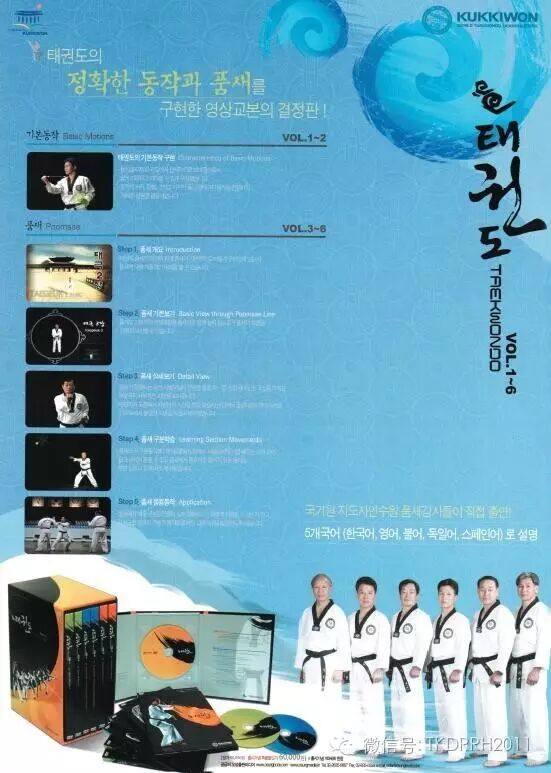 此套教程由韩国国技院出资拍摄,品势内容详尽,由国技院众多知名元老共同参与完成,也可以说,未来也很难再有一部像这样的权威大师们结集共同出版的品势教程了,是您在道馆里播放的品势训练权威资料。参与示范的有:李钟宽(国技院9段)、李奎珩(国技院9段)、黄仁植(国技院8段)、李春雨(国技院8段)、姜翼弼(国技院8段)、朴钟范(国技院8段)。此教程分韩文、英文、法文、德文、西班牙文五个版本,每套由品势含义、品势全方位演示、品势完整示范、品势分解说明和品势护身动作五个部分组成。