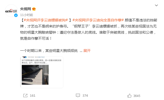 今天上午,央视新闻亲自发文:李云迪完全是自作孽。