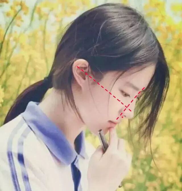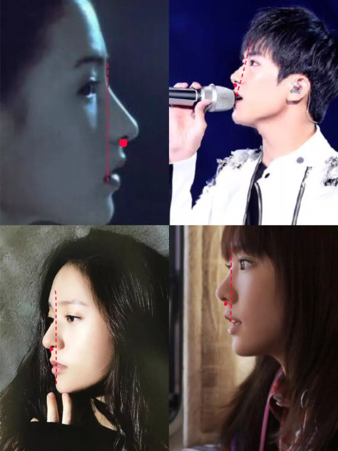水水教大家一个方法:画一条通过山根的直线,要垂直于水平线哦,然后看看鼻唇角的拐点在直线的外侧还是内侧,若在外侧,那就是一个饱满的鼻基底啦。