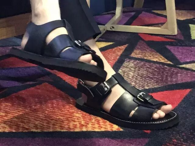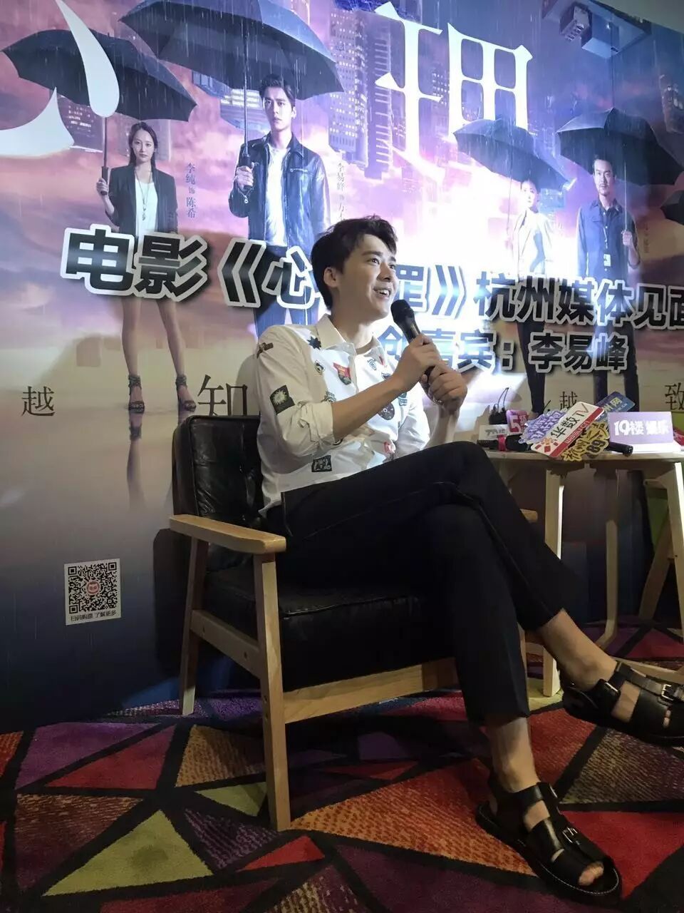 然而,印象中“高冷”的李易峰,光着脚,穿了一双“老爸款”凉鞋,摆了一个二郎腿,很随意地就在记者跟前坐下了。