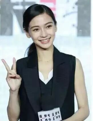Angelababy(杨颖)侧分刘海,在脑后将头发梳成一束,简单反倒好看。