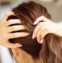 3.从发束中挑出一缕头发,缠在发束上,遮住皮筋,再用发夹固定,就可以了。