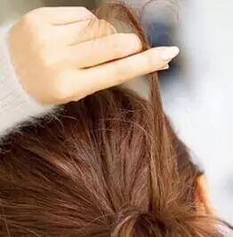 2.用手指将头发顶端的头发拉松,营造随意之感。