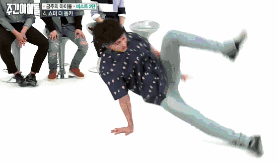 比如这样,本该在舞蹈之后面对镜头给粉丝行大礼,结果晕头转向之下,却变成了这样。
