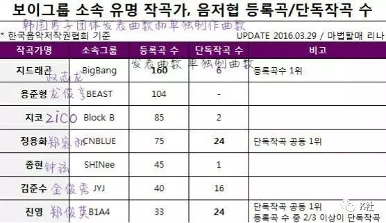 截止到2016年3月底,他在韩国男团成员的创作曲数目中以104首位列第二,真的特别棒。
