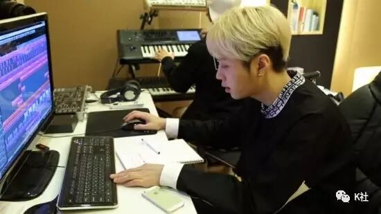 当练习生的时候就对作词、作曲和音乐制作萌生了兴趣,常常去作曲家的工作室聊天和学习。