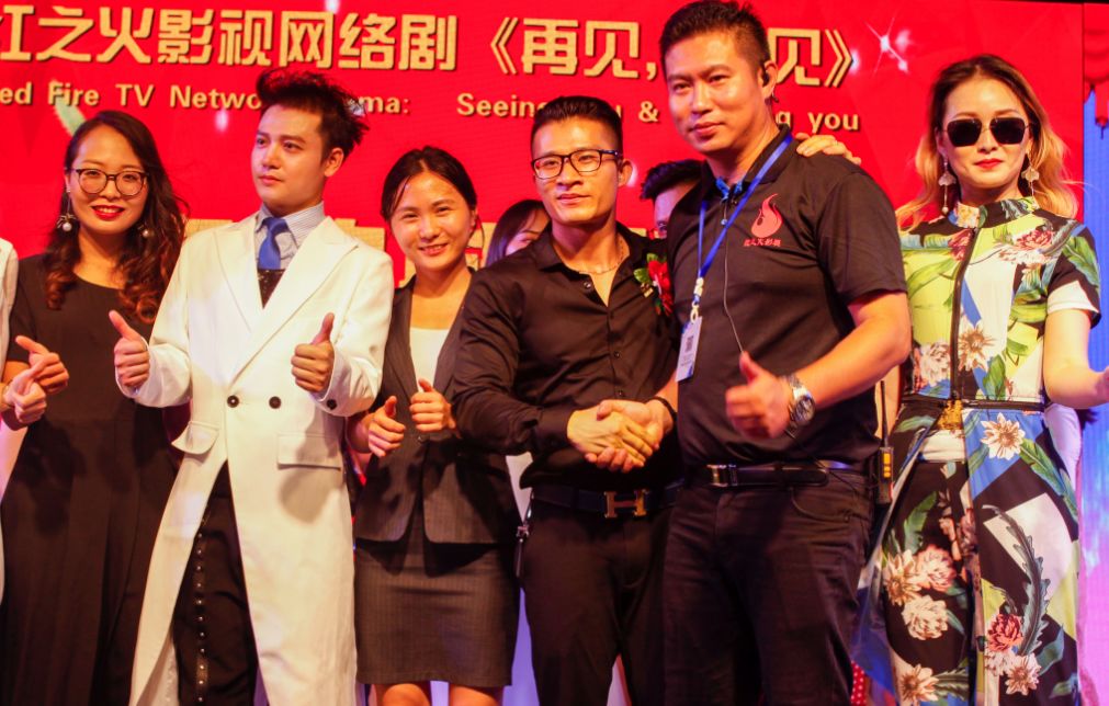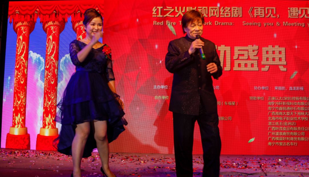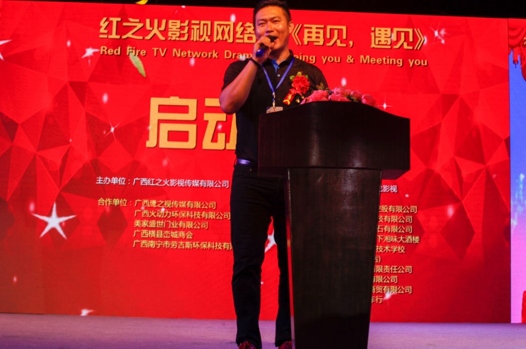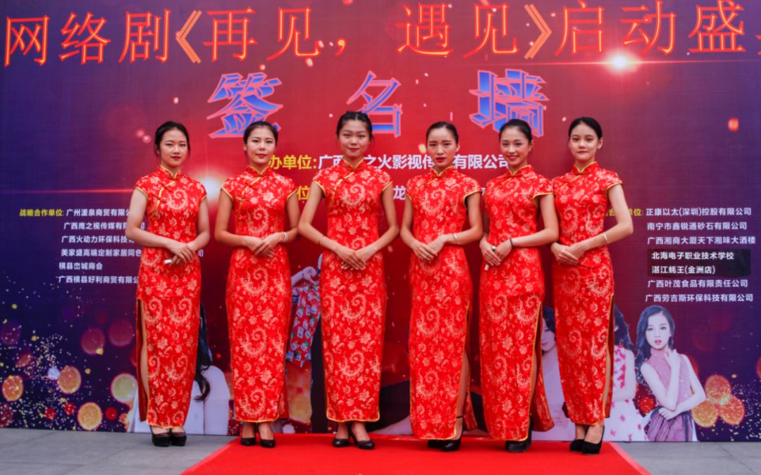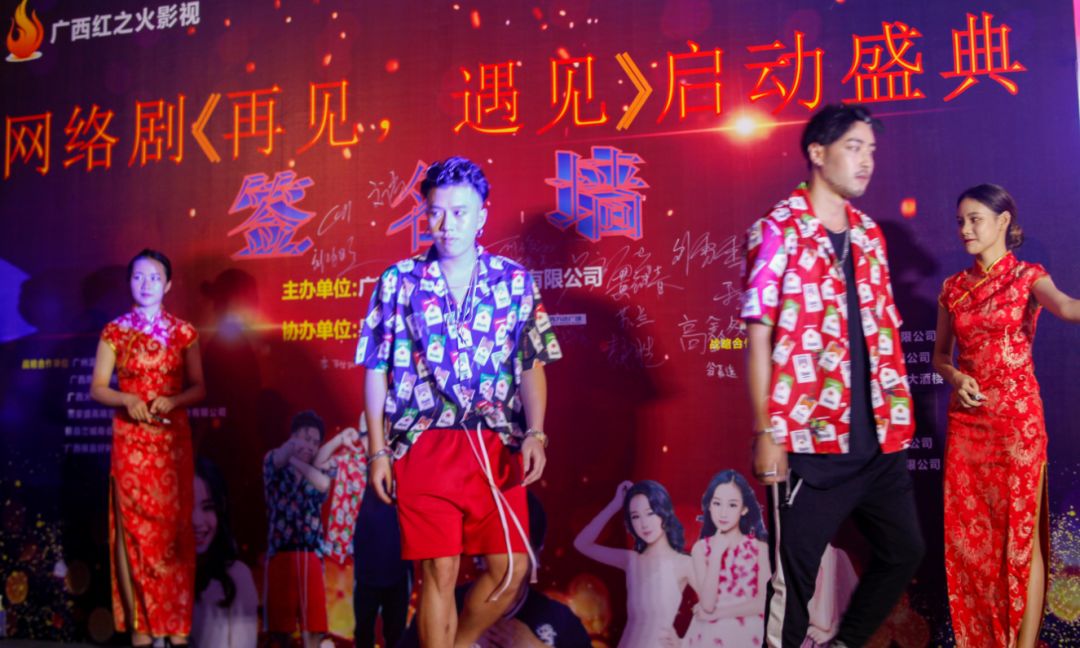 广西红之火影视传媒有限公司网络剧《再见,遇见》启动盛典在南宁青秀万达购物中心一号门外广场隆重举行。