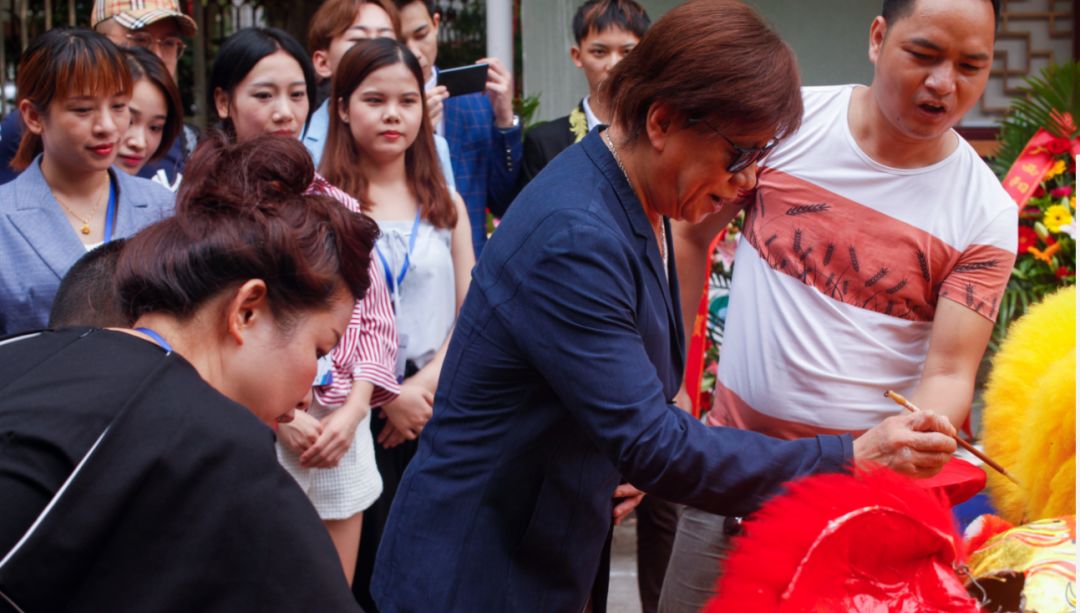 黄梦雪总经理和功夫巨星梁小龙共同为开业雄狮点睛,象征公司红红火火,生意兴隆,大吉大利!