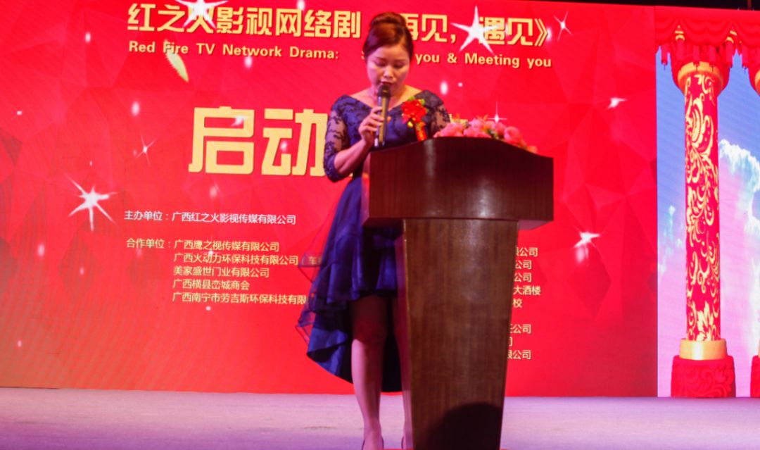 红之火影视总经理黄梦雪致欢迎词,黄梦雪总经理致词中介绍了广西影视目前面临的挑战和机遇,红之火影视将抓住机遇,顺应时代潮流,打造广西影视精品,为广西影视贡献力量。
