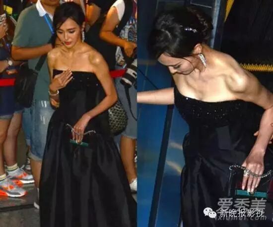难道没人发现神仙姐姐是溜肩吗?一穿露肩抹胸装就看的很明显哇!整个肩膀都是塌陷的。