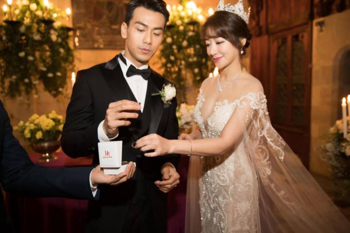 新郎的礼服相对新娘来说,样式要简单很多。所以很多新郎会选用不同颜色的领结来搭配,一般分为迎亲与婚宴仪式两种,在晚会上也会佩戴领结。而领结的颜色,都是根据新娘服装和婚礼主题,最重要的是新郎的礼服来变换的,比如袁弘的婚礼。