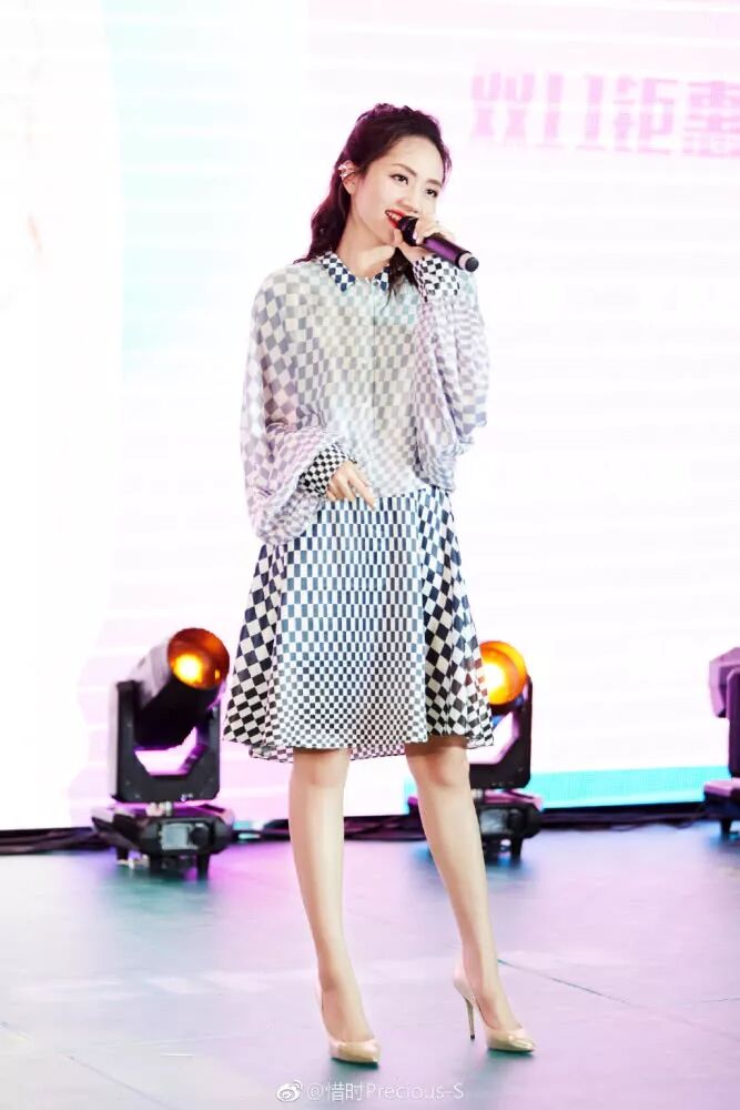 你还真的别说,一身好看的穿搭造型对一个女性来说是非常的重要,大家看一下她上面的这一身穿搭造型,在某演唱会上的搭配,用了波点格子设计的连衣裙穿搭,脚上踩着一双尖头高跟鞋,秀出了自己的大美腿,抢眼又抢镜,很有气质感。