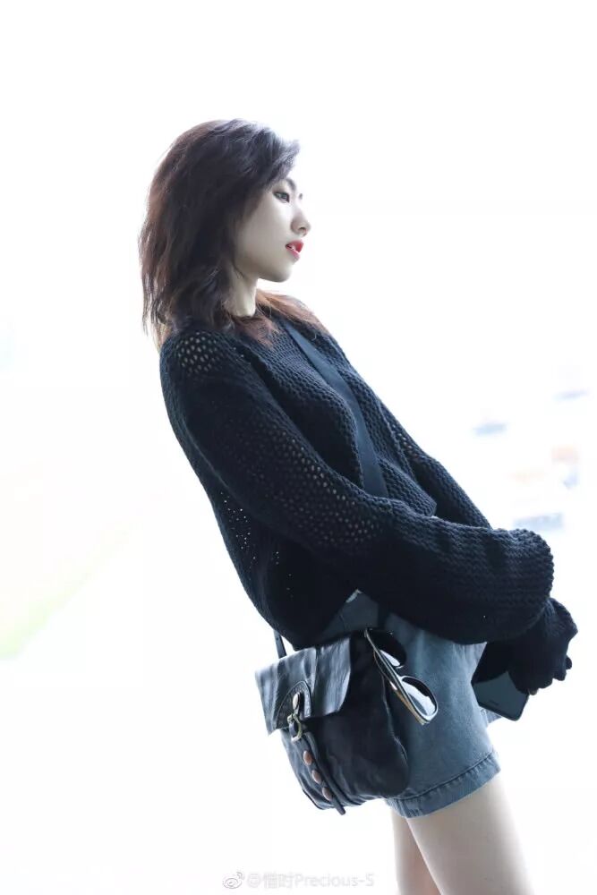 披着头发,身上穿着一件黑色上衣,在搭配上一条超短裙,脚上踩着一双休闲鞋,秀出了自己完美身材,这腿也太美了,感觉她的身高有170的视觉感。