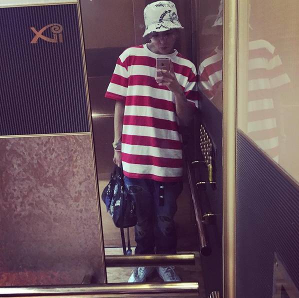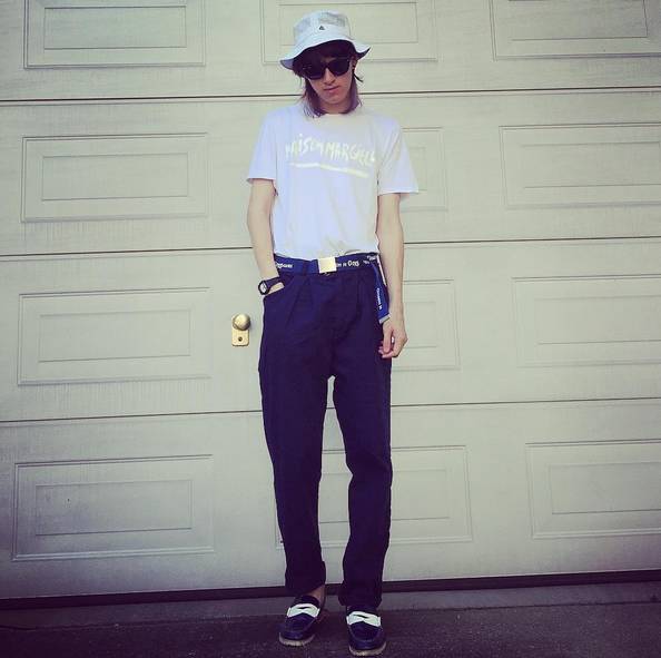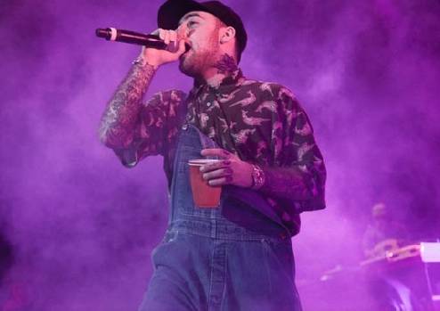 饶舌歌手Mac MIller、背带裤放下一边带子