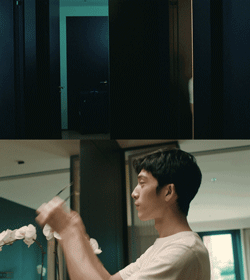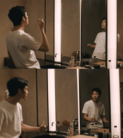 小井先生身着白T恤,对着镜子打理头发,不自主地哼起小曲儿与老唱片共舞。闲适自在,简约而不简单。小礼帽+墨镜怎么样?还是不带了,就这样走吧,皮这一下很开心~