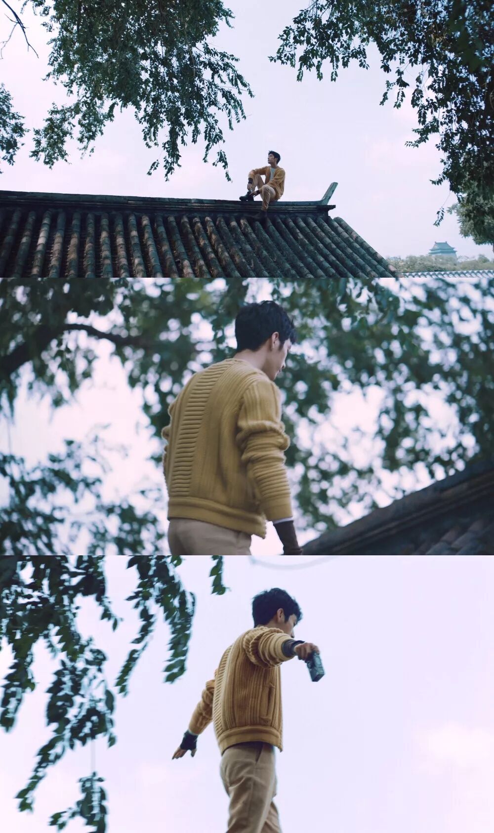得知要站在房檐上拍摄的井柏然,和工作人员打着趣“冒着生命危险啊,来吧。”说完便翻过围栏,跨上房顶,背过身去看着远方的建筑,对他来说这里便是家。出道时刚满18岁的井柏然,独自离开老家来到北京,从对未来没有判断,不敢憧憬想象的新人,到现在事业、生活都自己安排的井井有条,他说生活和工作都应该会“呼吸”。