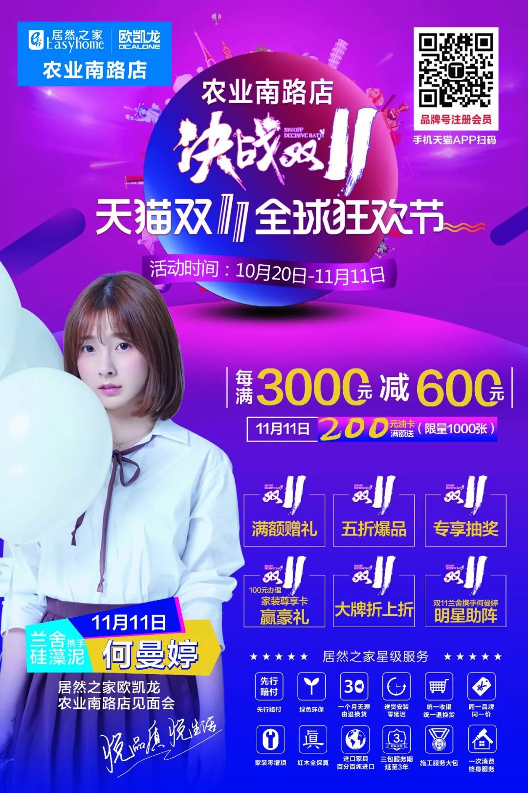 即日起-11月11日,手机淘宝、天猫用户扫描下方二维码关注“居然之家”品牌号,即可获得精美礼品兑换券1张,11.11可到农业南路店居然之家欧凯龙领取。