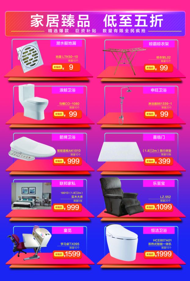 11月11日顾客在冠名品牌场地购买家具建材产品,每交款满10000元商场补贴500元现金券。2万冠名限量使用1.8万元现金券(特价产品及补贴价产品除外)。