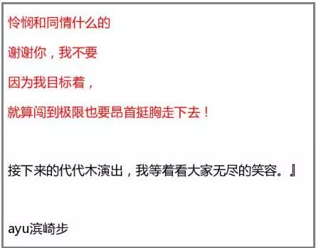这样自虐式的努力,导致身体出现严重问题,如果换一个人,我肯定会觉得,最好还是休息吧,不要太拼命了。但对于滨崎步,我无话可说。