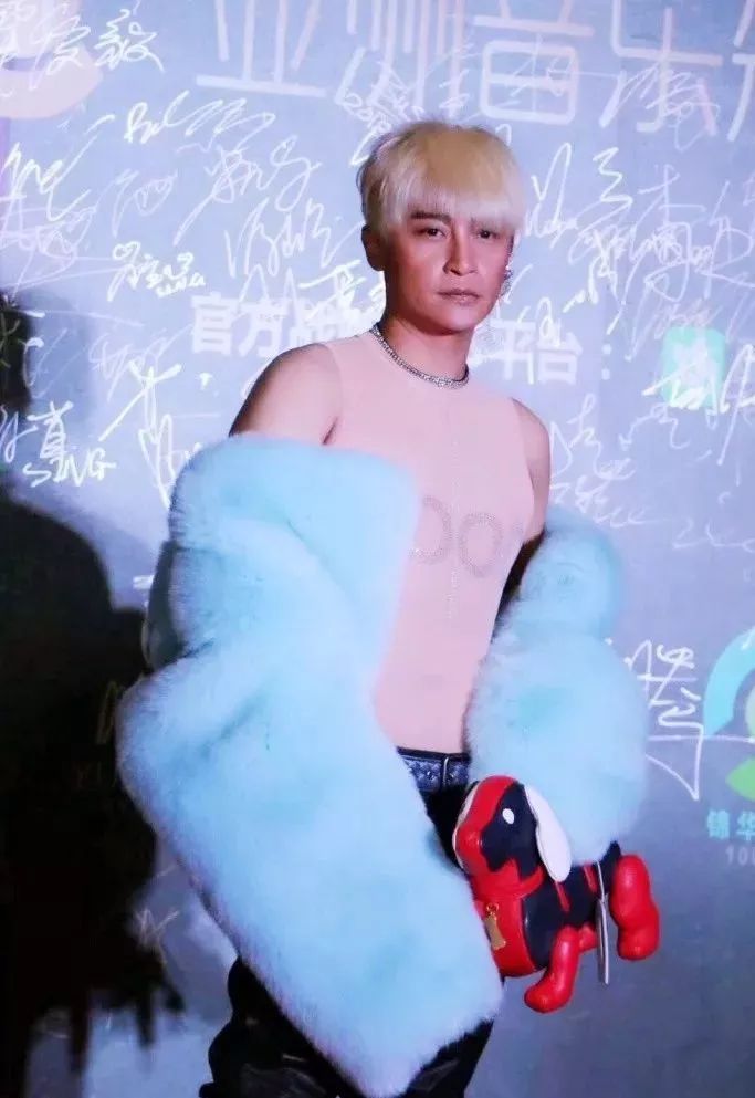 而在近一年里,公开亮相的场合,陈志朋都顶着红橙黄绿炫彩的头发,穿着“奇装异服”登场,透明的薄纱上衣、粉蓝的皮草、明黄的哥拉斯小怪兽羽绒服,再看下半身的搭配,有时人字拖,有时配短裤……霎时激起争议。