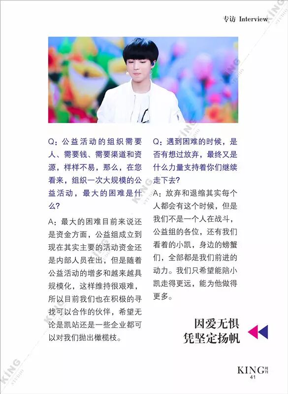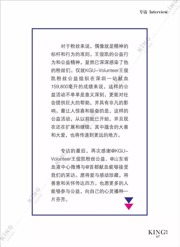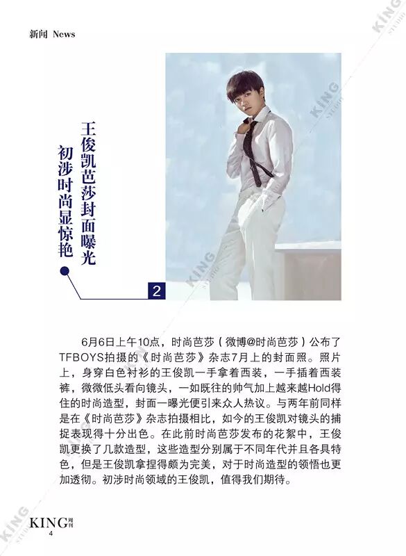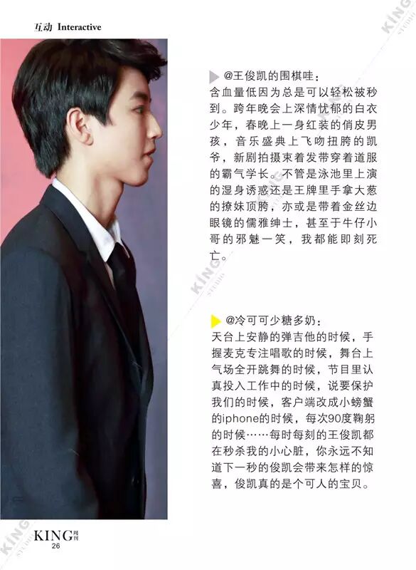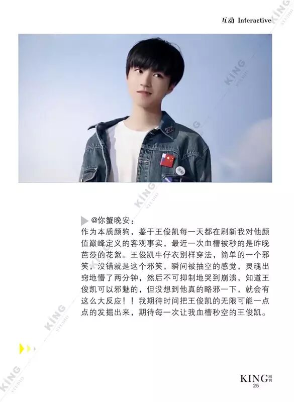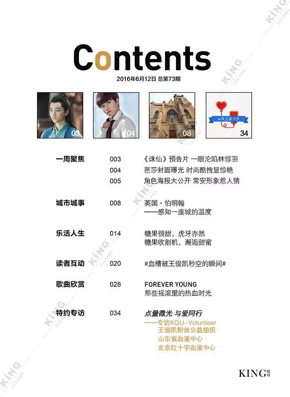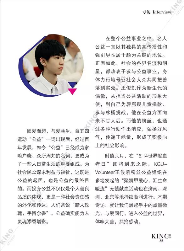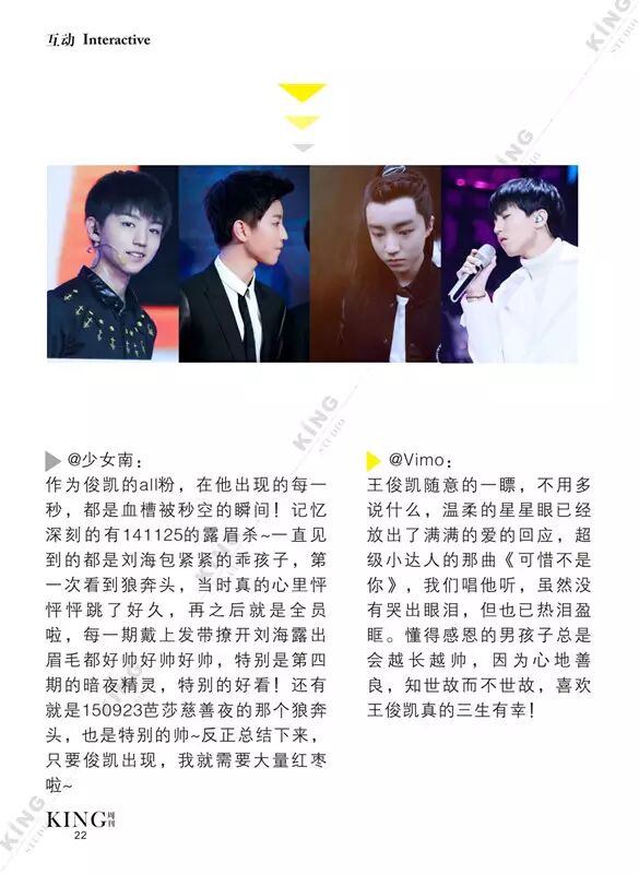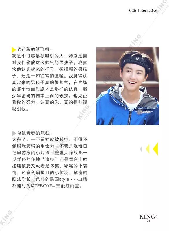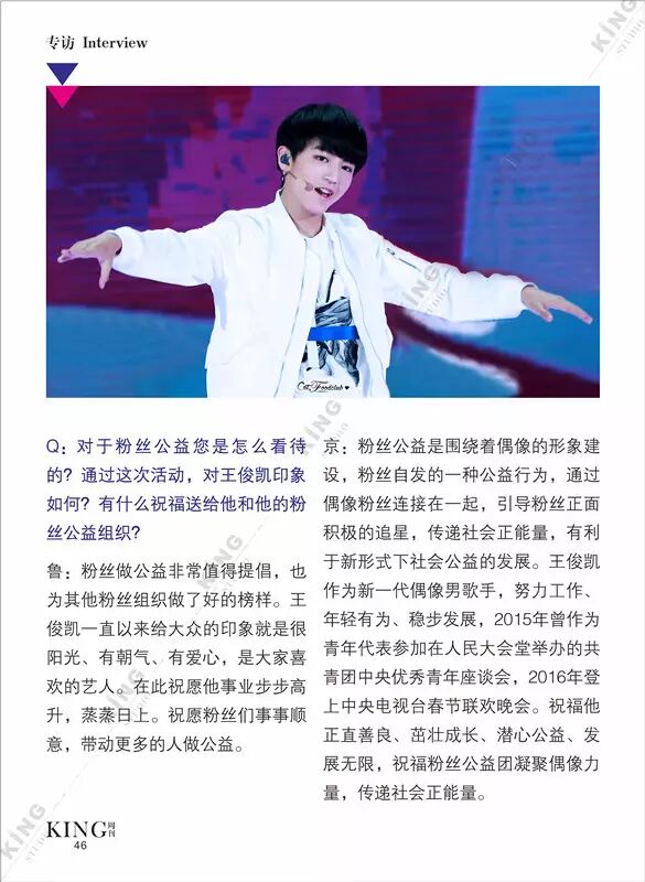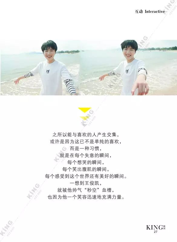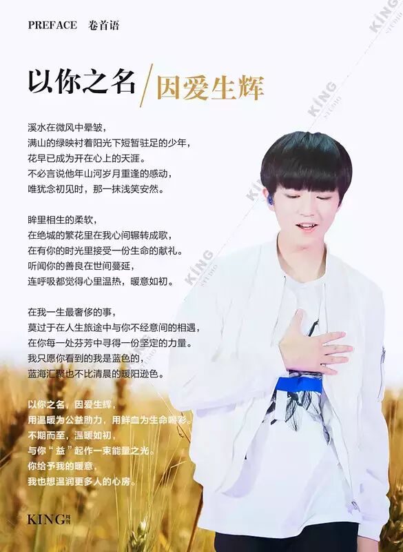 王俊凯KING周刊 【第七十三期】 暖暖 王俊凯KING周刊 内地男星 2016-06-13 21:59:22 427 创作不易,用心坚持,欢迎请BaGua喝几杯爱心咖啡!打赏并支持本文 打赏并删除本文 芭莎封面曝光看时尚男孩TFBOYS-王俊凯惊人表现力。城事感受伯明翰的温度。生活分享糖果带来的味蕾悸动。摇滚音乐唱响青春热血。专访KGU-Volunteer王俊凯粉丝公益 @山东省血液中心微博 @首都献血 与王俊凯“益”起来!我不提示,你们记得向左划嘛卷首新闻城事生活互动音乐专访 创作不易,用心坚持,欢迎请BaGua喝几杯爱心咖啡!打赏并支持本文 打赏并删除本文 感谢您的支持鼓励,我会继续努力的!文章地址:用户邮箱:打赏金额:USDT 请输入数字点击”去打赏“,即可进行打赏支持本文章哦 王俊凯 About the Author 王俊凯KING周刊 功能介绍:王俊凯粉丝自创周刊,介绍王俊凯和他的故事 Related Posts 王俊凯KING周刊 |【第一百二十期】美好时光 2017-05-08 22:20:55 王俊凯KING周刊 【七十五期】恭喜毕业 2016-06-27 22:19:52 王俊凯KING记晚报|第七十八期 2016-06-27 22:19:51 王俊凯KING周刊 【七十四期】灵魂画手 2016-06-20 22:18:05 王俊凯KING记晚报|第七十三期 2016-06-20 22:18:04 发表评论