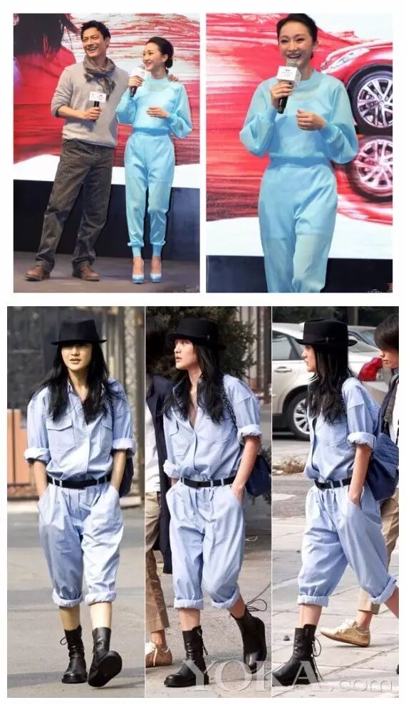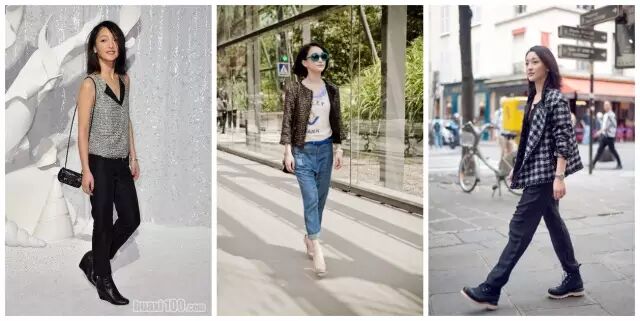 周公子跟乔妹身型完全不一样,是哒,虽然周公子可能还要比乔妹矮上1到2公分(不要怀疑,见过本人,肯定不过155),但她肩膀平整无肉,平胸背薄,骨感利索,比例上腿也更长,所以穿衣比乔妹多了很多选择。