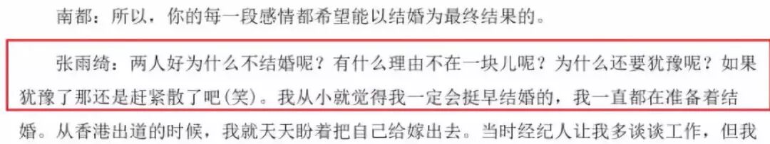 《南都》记者曾问她,是不是每段感情都以结婚为目的,她连续三个反问句: