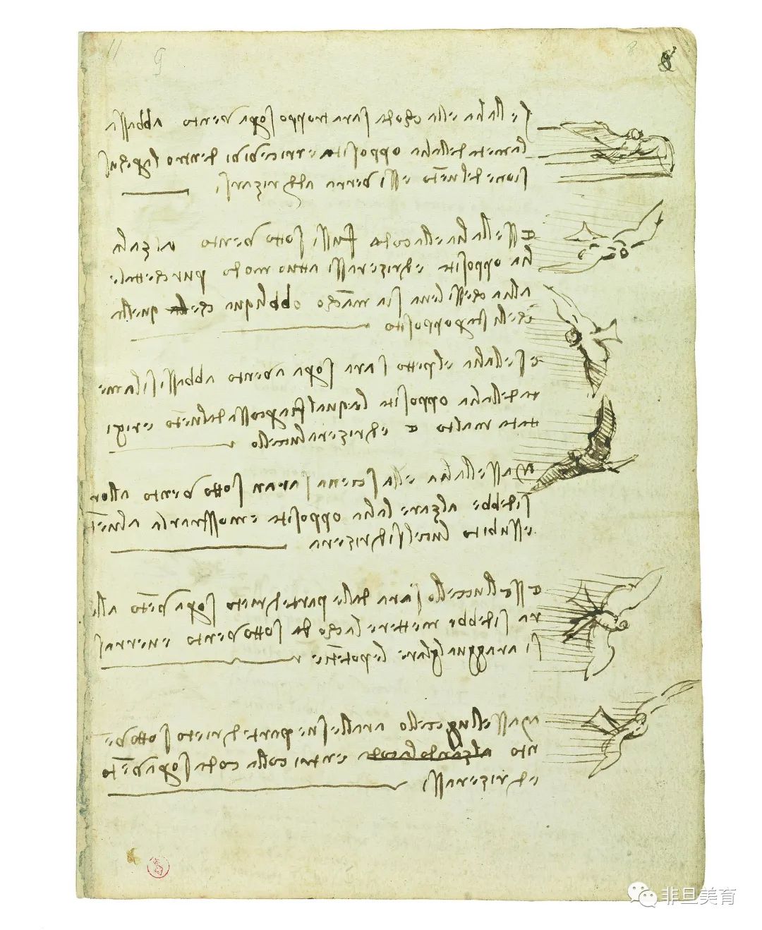 莱昂纳多:《鸟类飞行抄本,关于飞行中鸟类与风向关系的注释》,1505,