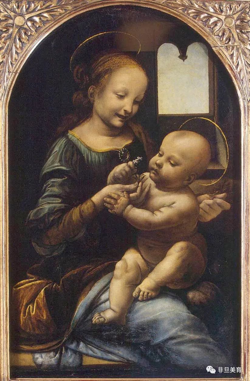 莱昂纳多:《贝努瓦的圣母像》,1478-1481年,现收藏于圣彼得堡的艾尔米塔什博物馆
