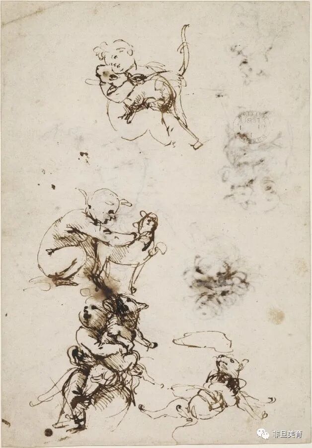 莱昂纳多:《安吉里之战图稿》(现已遗失),1503年,旧藏于布达佩斯美术博物馆