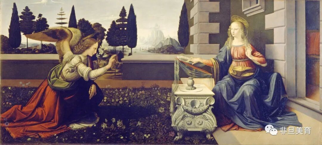 莱昂纳多:《圣母领报》,1472-1475年,现收藏于佛罗伦萨乌菲齐美术馆