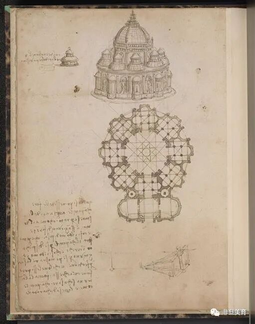 莱昂纳多:《阿什伯纳姆抄本,集中规划的建筑设计图稿》,1492年,巴黎法兰西学院图书馆