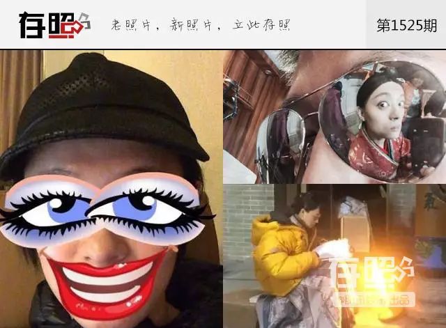 ▲左图为邓超给孙俪P图,右上图为邓超晒孙俪瞪眼照,右下图为邓超晒孙俪在片场的照片