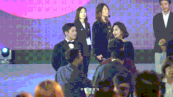 作为对比,有网友发出了2014年,出演《来自星星的你》之后,在百想获得了电影部门和电视剧部门的人气赏,以及电影部门新人赏的金秀贤的动图。