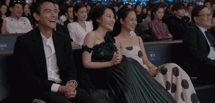 第一排的位置,坐着大导演徐克、张艺谋夫妇、姜文夫妇,金像奖影后刘嘉玲、百花奖影后许晴。