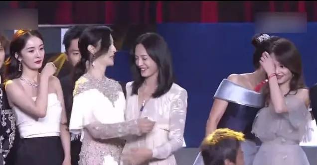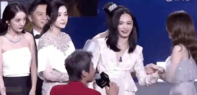 而旁边的杨幂和范冰冰,也在客气地让姚晨站中间,李冰冰也让出了很大的位置。