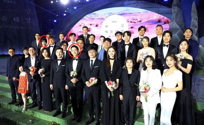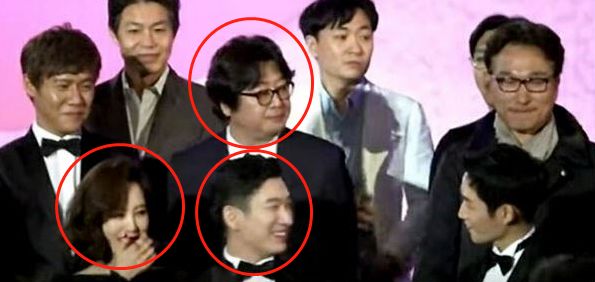 他左边这三位,就是当晚的影帝金伦奭,视帝曹承佑和视后金南珠。