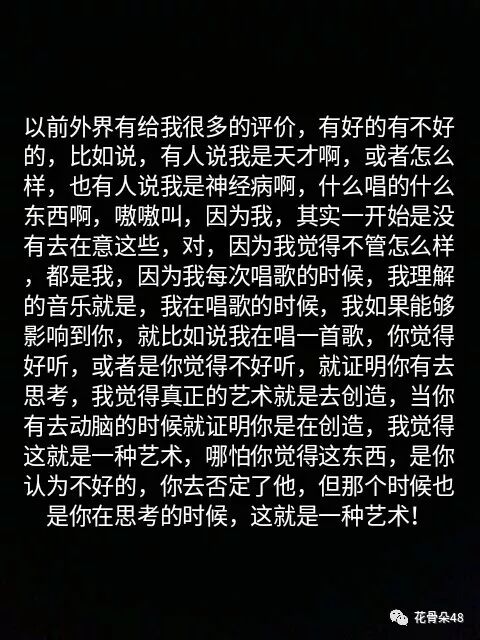华晨宇经典语录 花骨朵48 内地男星 2017-11-17 00:13:43 214 创作不易,用心坚持,欢迎请BaGua喝几杯爱心咖啡!打赏并支持本文 打赏并删除本文 I like he❤ 创作不易,用心坚持,欢迎请BaGua喝几杯爱心咖啡!打赏并支持本文 打赏并删除本文 感谢您的支持鼓励,我会继续努力的!文章地址:用户邮箱:打赏金额:USDT 请输入数字点击”去打赏“,即可进行打赏支持本文章哦 华晨宇 About the Author 花骨朵48 功能介绍:欢迎喜欢音乐,摄影,文字,情感,新闻的小伙伴们,让我带你们一起释放soul Related Posts 华晨宇经典语录 2017-11-17 00:13:43 发表评论