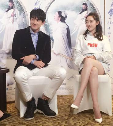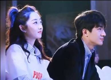 电影发布会,林更新与蒋梦婕在台下也是互相“咬耳朵”。